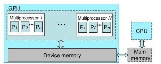 Auf dem Bild ist eine Grafikkarte zu sehen, die viele kleine Recheneinheiten hat, die alle gleichzeitig arbeiten können. Jede dieser Einheiten kann einen kleinen Teil einer größeren Aufgabe übernehmen. Weil es so viele davon gibt, können sie alle zusammen viele Teile auf einmal bearbeiten. So können Grafikkarten sehr schnell viele Berechnungen durchführen, was sie super für Dinge macht, die viel Grafikleistung brauchen, wie Videospiele oder wissenschaftliche Programme.