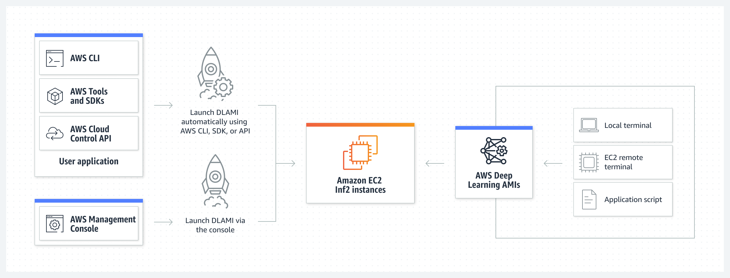 AWS bietet eine Vielzahl von KI-Beschleunigerinstanzen für Deep-Learning-Inferenzen an. Die Inf2-Instanzen sind sehr leistungsfähig und kostengünstig. Aufgrund ihrer äußerst schnellen internen Verbindungen können sie verteilte Inferenzen über mehrere Beschleuniger hinweg durchführen und Modelle mit hunderten Milliarden Parametern ausführen. Inf2-Instanzen sind im Vergleich zu vergleichbaren EC2-Instanzen bis zu vierzig Prozent kosteneffizienter und liefern einen bis zu vierfach höheren Durchsatz und eine bis zu zehnfach niedrigere Latenz.